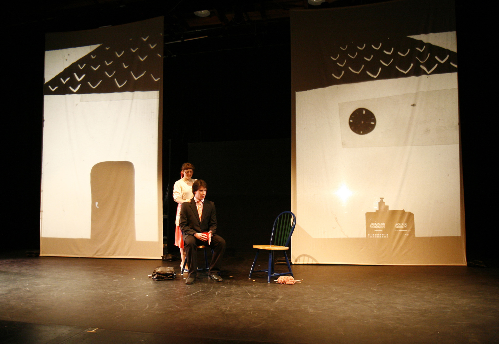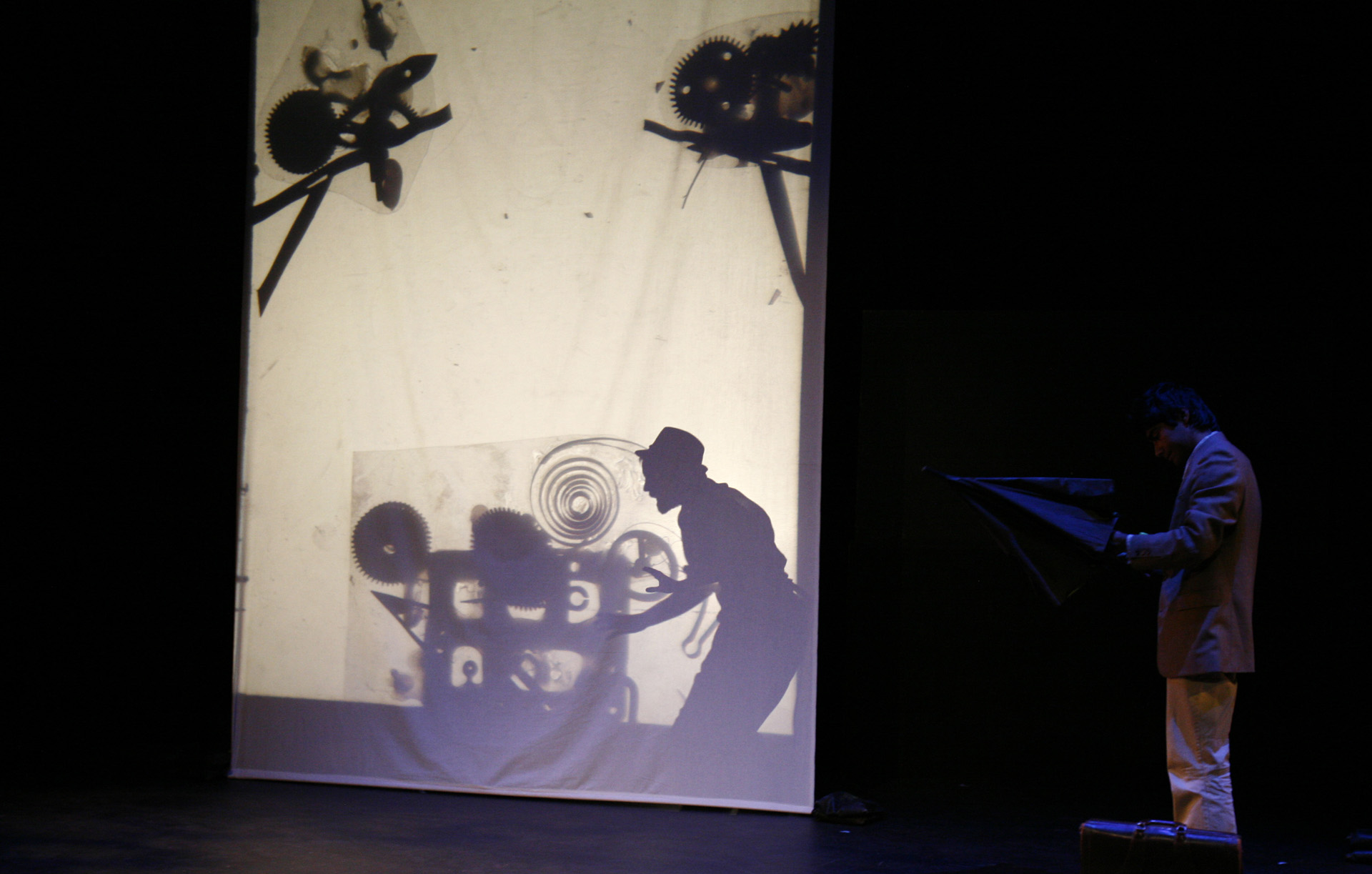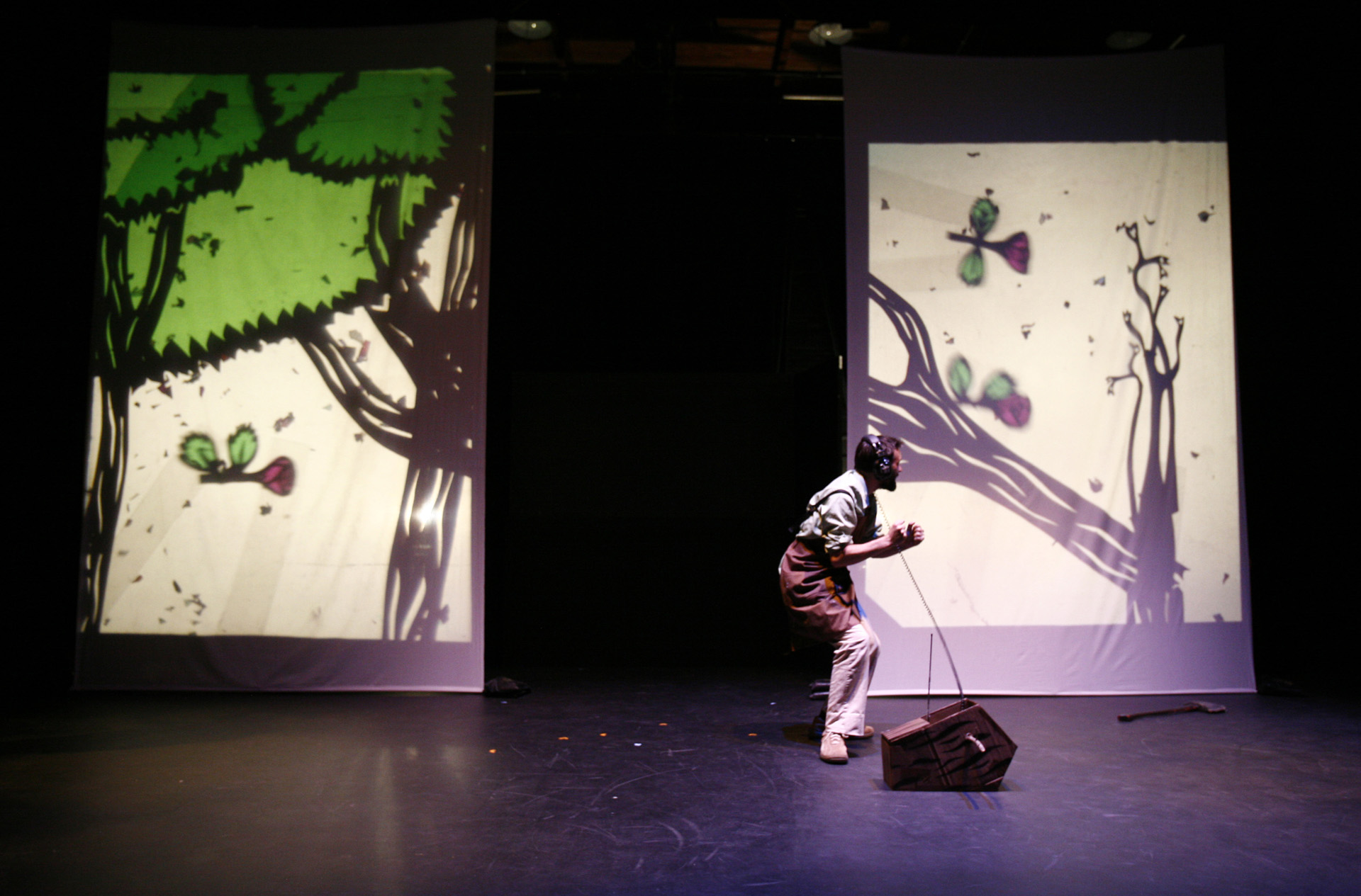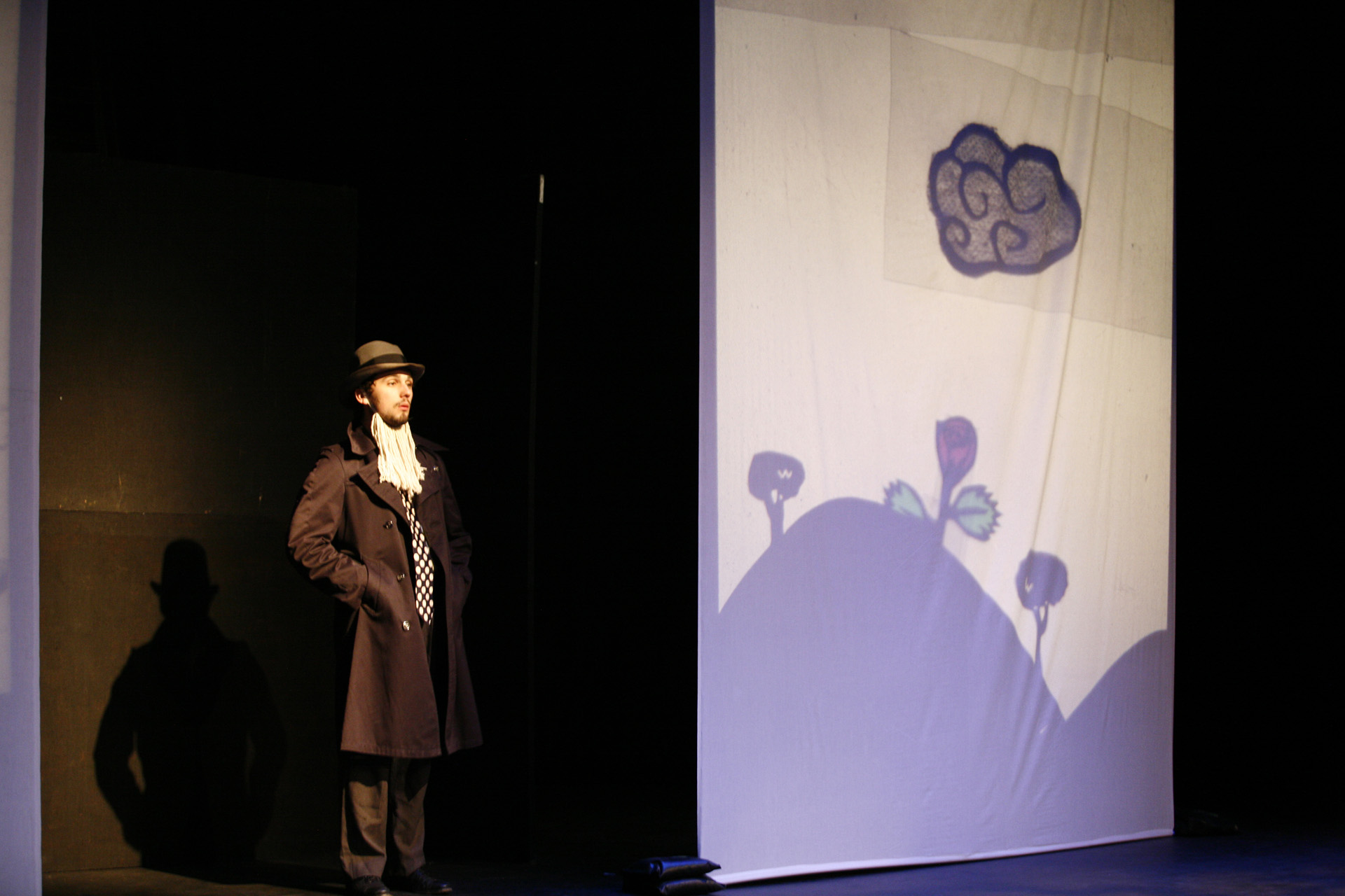 This was my first real introduction to shadow puppetry, overhead projectors, and directing large ensembles. Working with 3-dimensional actors projecting shadows onto a 2-dimensional screen, while choreographing the puppeteer's actions to interact with the actor's shadows, was so interesting to me that I have been exploring the form ever since.