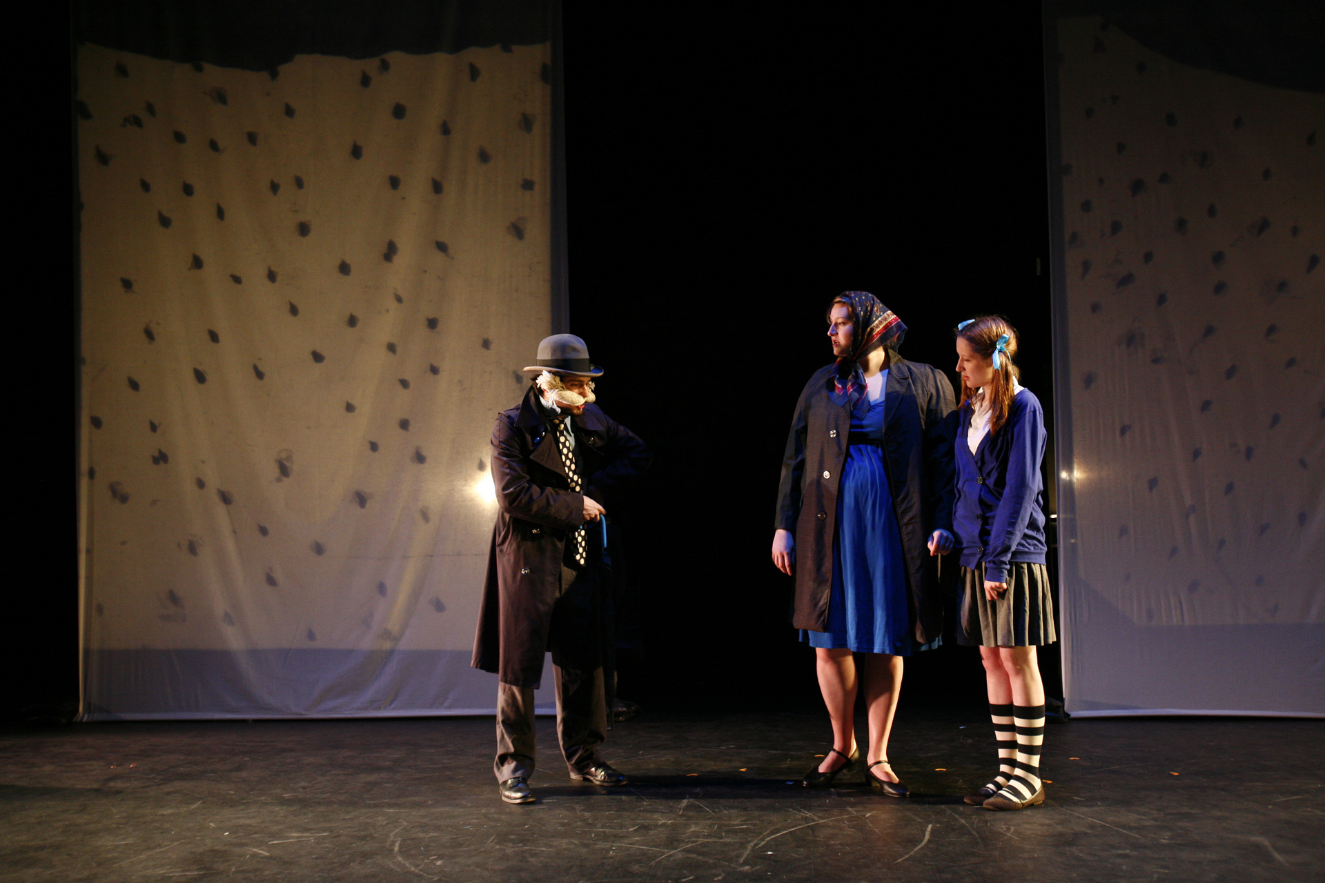 In 2008 my friend Barb Hall adapted a selection of Roald Dahl's short stories for SATCo, the Student Alternative Theatre Company at the University of Victoria. She staged it with a company of 10 actors, 4 overhead projectors, and 8 puppeteers. I was one of those actors, and it was a fantastic - we got to really cut loose and get silly. Roald Dahl isn't known for his naturalism.
